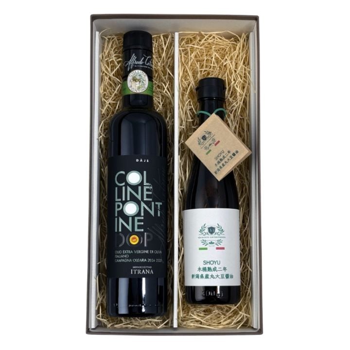 【2月限定10%引き】チェトローネd.o.p. EXVオリーブオイル500ml・新潟県産木桶熟成2年 丸大豆醤油 300ml
