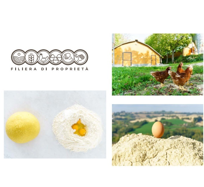 ”LA CAMPOFILINE”の素晴らしさは伝統的な製法だけでなく、原料の小麦(デュラムセモリナ)と卵にもこだわり、小麦は農薬不使用、鶏や卵は抗生物質不使用、全て遺伝子組み換えでないものを使用する為に原料はすべて自社で一貫生産をしています。